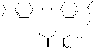 | Product | Boc - Lys(DABCYL) - OH N - α - t - Boc - N - ε - (4,4 - dimethylazobenzene - 4’ - carbonyl) - L - lysine | | CAS | | | Size | 100 mg | | Catalog # | 23490-01 | | US$ | 115 | | Hits | |