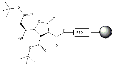This preloaded resin is a useful tool for the synthesis of peptides with a C-terminal aspartic aldehyde. After completion of solid-phase peptide synthesis using standard Fmoc-chemistry, side-chain protecting groups are removed with anhydrous trifluoroacetic acid. The release of the fully deprotected peptide-aldehyde is achieved by treatment with a mixture of acetonitrile/water/trifluoroacetic acid.