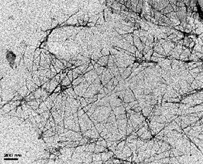 Electron microscopy of b-amyloid (1-40) stained with Thioflavin T (data generated by an AnaSpec scientist).