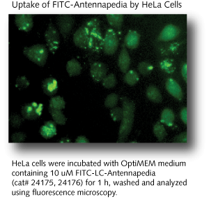This is a fluorescent (FITC)-labeled Antennapedia, Abs/Em = 493/522 nm.